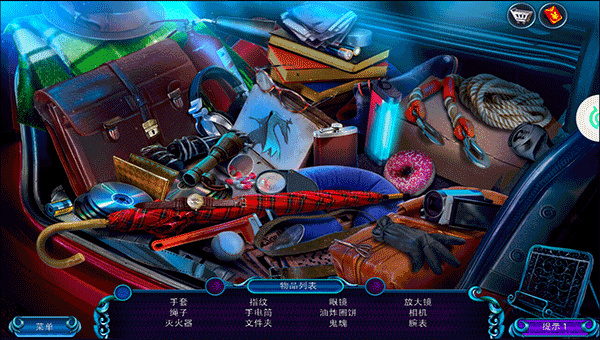 2、玩家需要在这里找到手套、灭火器、指纹、手电筒、文件夹、眼镜油炸圈饼、放大镜、相机、腕表、绳子等物品;