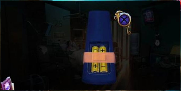 3、用完振颤器,接下来点击墙上的时钟,取下电池,然后点击桌子,拿到剧情本和遥控器,还有关灯。