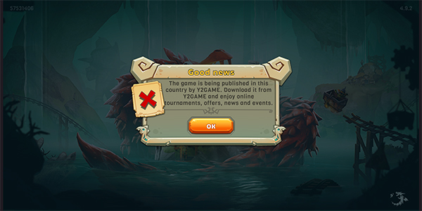 1、在本站下载并安装饥饿龙国际服,如果看到下方界面说明我们当前ip被识别为中国,所以我们可以切断网络或者开启加速器游玩,如果加速器失效,请更换节点或加速器后再次尝试