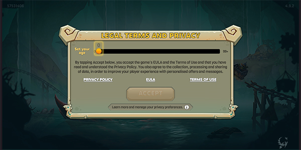 2、正常会来到下方界面,我们滑动上方的进度条更改年龄,请滑动至大于18岁,接着点击下方的accept按钮