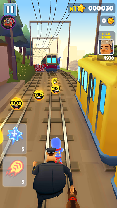 地铁跑酷我相信大家都不陌生,可以说是最经典的跑酷类游戏了,也是拥有极高的可玩性的所以才会一直流行到现在。与其它今典跑酷类游戏一样,游戏拥有众多个不同版本。地铁跑酷笑脸金币版本是由一名地铁跑酷忠实玩家自制的版本,此版本将之前的金币替换成了笑脸金币!与其它版本地铁跑酷玩法一样,玩家只需求控制角色在地图中跑酷躲避障碍物以及警察的追捕,也可以解锁更多跑酷角色,同时游戏道具也有所增加也大大的提升了游戏的可玩性。游戏还有多个地区地图可以随意选择,也可以和自己的朋友一起比拼在排行榜上争个高下,快来下载成为一名跑酷高手吧!