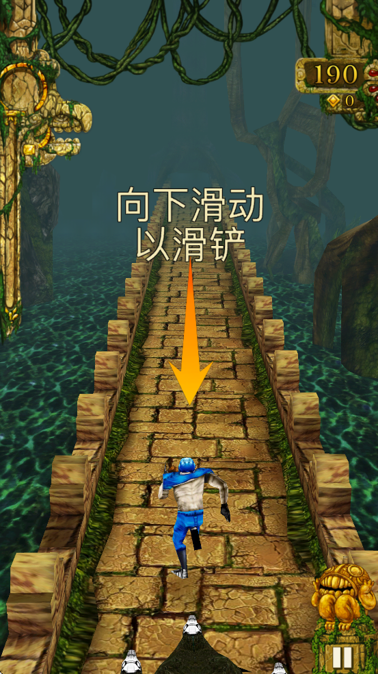 提醒:无论被哪种方式绊倒后均有一定的“无反应时期”,就是说在前方有障碍物的情况下,滑动屏幕跳跃是没有反应的,所以如果前方有障碍物时不能使用该种方法(下方2和3同理)。