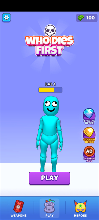 1、打开谁先阵亡游戏,点击【Play】按钮即可开始挑战。