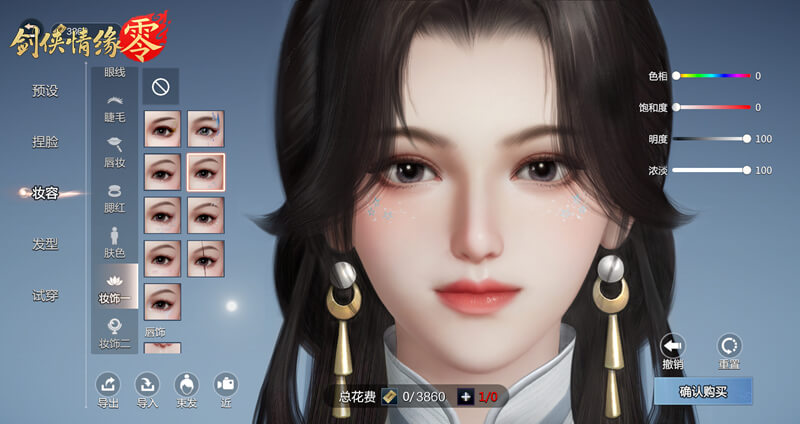 每一位来到《剑侠情缘·零》的少侠,都能亲手捏出属于自己的角色形象。在游戏中,角色面部被划分为脸型、眉毛、眼睛、耳朵、嘴巴以及鼻子六大模块,每个模块又由多个独立参数进行精细调控。无论是三庭比例,还是眉毛的高低长短,抑或是唇部的厚薄,上百处细节皆由少侠们随心雕琢。