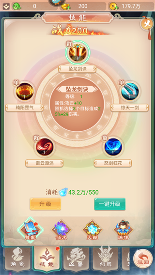 仙术有多种。玩家可激活并升级仙术,获得仙术属性加成。