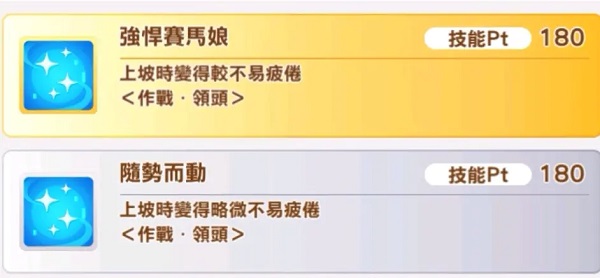 大家基本都有的后追马娘,固有很不错,只是后追马娘比较依赖的直线一口气在这次大赛中效果没那么好。另外育成黄金船的小伙伴不需要学五觉技能,没用。