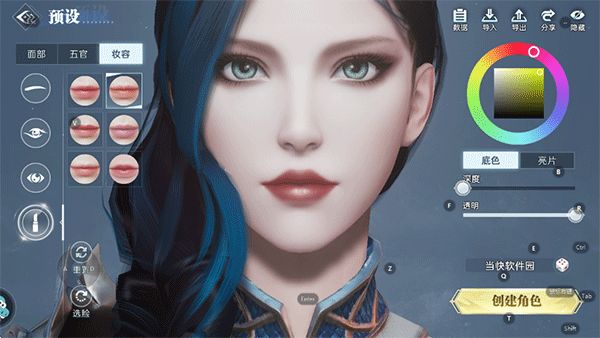 3、创建角色,先为自己取一个ID,点击屏幕右上角的细节捏脸,可根据喜好来捏出你喜欢的妆容;