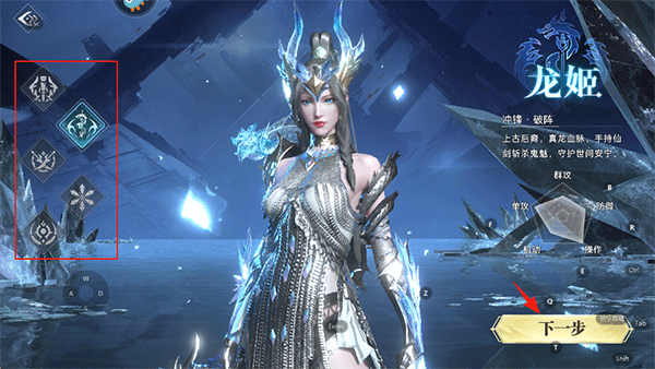 2、选择一个你喜欢的职业,点击左侧的图标切换职业,再点击下一步;