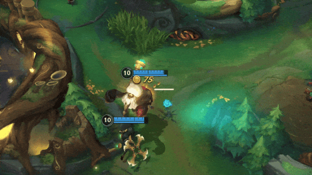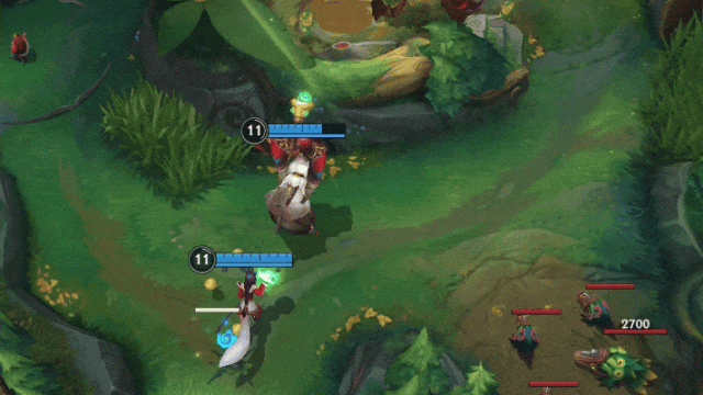 对线消耗时,木灵强化普攻起手减速,接靠墙Q(1)技能打出眩晕,接着配合队友补普攻完成一波消耗。