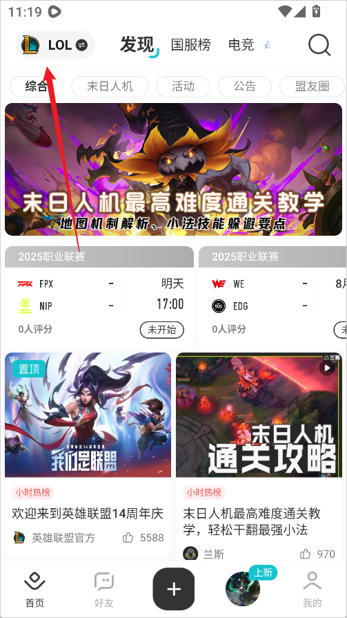 1、玩家还可以通过掌上英雄联盟软件进行申请,首先打开掌上英雄联盟软件,点击右上角图标,然后选择英雄联盟手游。