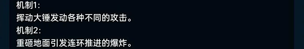 小丑的基本攻击方式有三种:①跳击,②左右横扫,③滚击。还有就是④锤击地面引发连环的推进爆炸。
