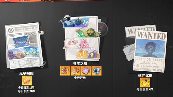 如船长等级为3级,这时我们需要培养3个不同属性的伙伴,首先去刷冒险笔记,将3个伙伴的等级达到3级,然后根据战力排行,优先去刷战力高的伙伴属性的觉醒石,接着把全部可觉醒的都觉醒之后,再去刷卡片的养成资源。