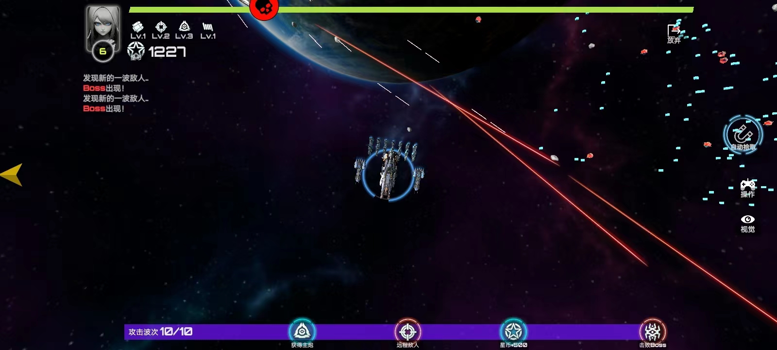 7、注意要躲避一下这条红色的线,如果被射中会损伤战舰的血量;