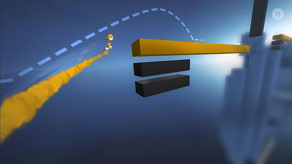2、跳起之后再用右拇指轻触一下并且长按,这样就能跳得更高且更远,到达跑道上后就能松开。