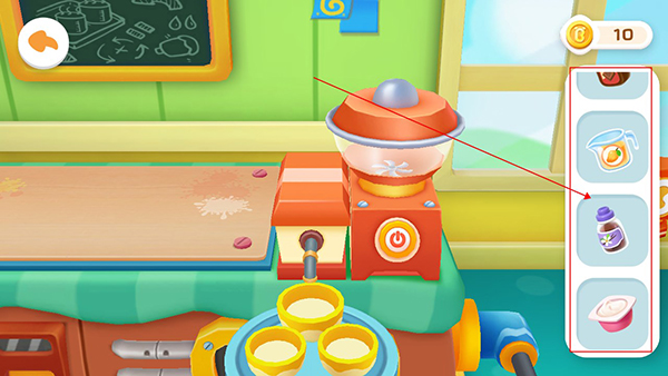 接下来,用户可以根据自己的口味,为冰淇淋选择喜欢的调味料;游戏的右侧有一个专门的调味料区,用户可以选择宝宝最喜欢的口味;