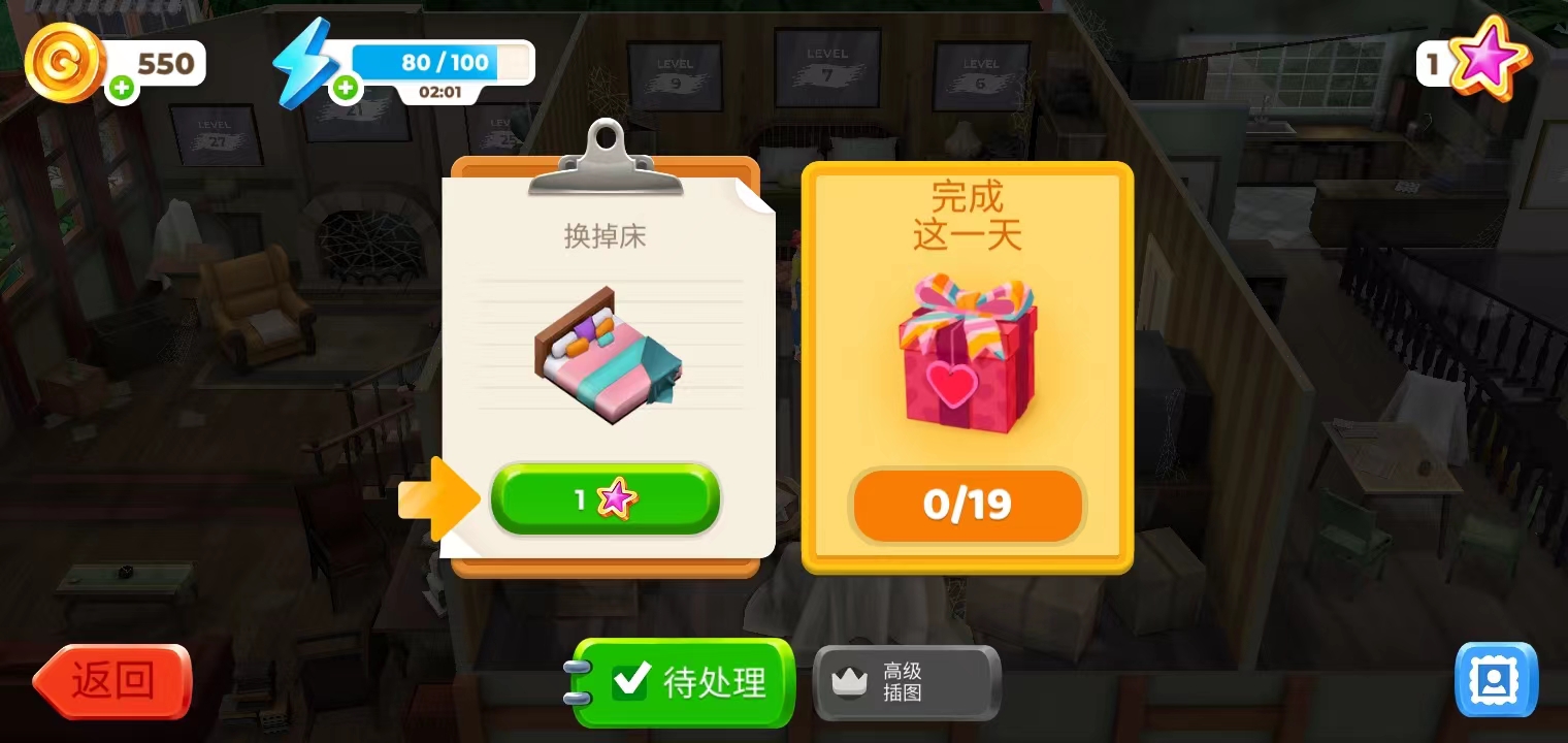10、第一个任务就是把床换掉,玩家可以选择自己喜欢的床,不过做任务是需要星星的哦~