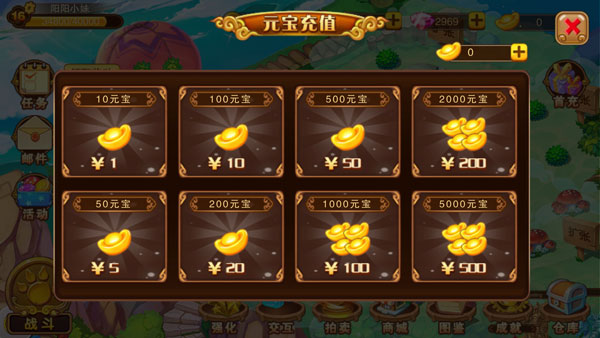 玩家可通过充值操作,花费指定数量的人民币,获得对应的钻石