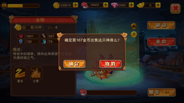 玩家可通过出售操作,卖掉多余的神兽或兽蛋,换取一定数量的金币补偿