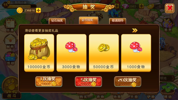 玩家可通过参与活动(比如每日连续登陆、天天爱抽奖等等),获得一定数量的金币奖励