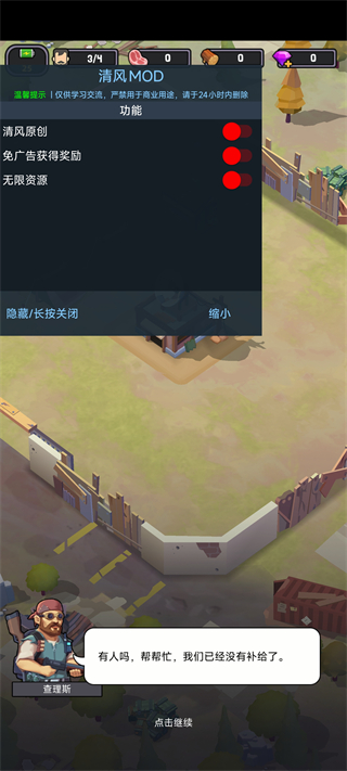 游戏内置作弊菜单可开启广告获得奖励,所有原本需观看广告才能解锁的奖励都可直接领取,让你专注于策略经营与生存挑战,体验更流畅的游戏过程。