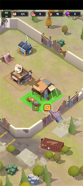 进入死亡崛起游戏后,首先需要为营地打下基础。点击【建造】按钮,选择并放置核心建筑,为后续发展做好准备。