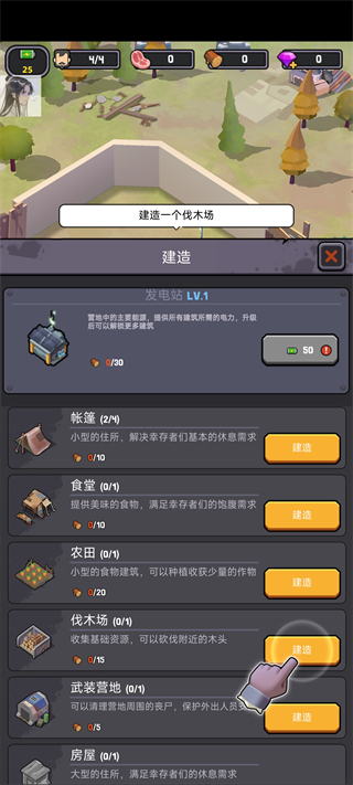 在建造板块内,你可以根据当前需求选择不同类型的设施,如资源采集点、防御塔或生活区。合理规划布局,将让你的营地更高效地运转。