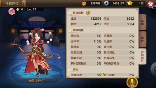 刻子:当三张灵符区域灵符相同时,则激活刻子加成。激活后召唤师可获得基础攻防血+4%以及对应系伤害减免+4%。