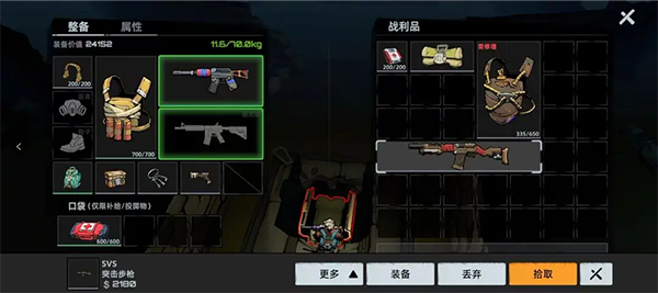 您可以点击或拖动以拾取或装备战利品。