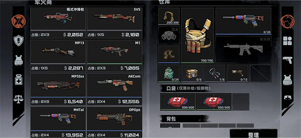 在物资兑换界面,可以购买生存所需的军火、背包、装备、补给等物资,也可以以一定折损价格回收物资。