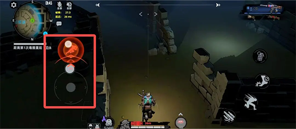 您可通过右侧按钮进行换单,翻滚,投掷手雷等操作,以应对不同情况。