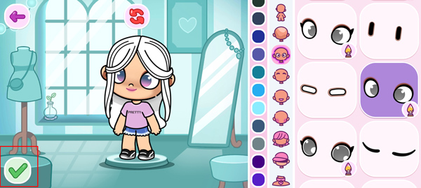 5、玩家可自定义角色的外貌、如发型、眼镜、眉毛、鼻子、嘴巴等,设计好后点击左下角√保存即可;