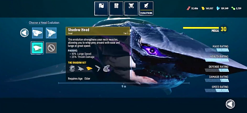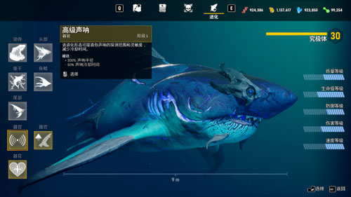 在《食人鲨》中,鲨鱼的终极成长并非单一数值提升,而是通过进化形态系统实现能力分化。目前游戏共设有三大进化路线,分别为:暗影系、骨质系、生物电系,每种形态均对应不同的战斗风格与玩法取向。