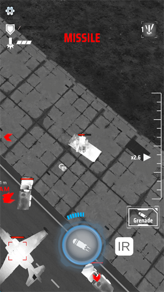 4、点击屏幕下方的红色投弹按钮来投放炸弹。注意,步兵防空导弹有跟踪效果,在轰炸过程中,最后时刻尽量避免悬停,快速移动以减少被防空导弹锁定的风险。