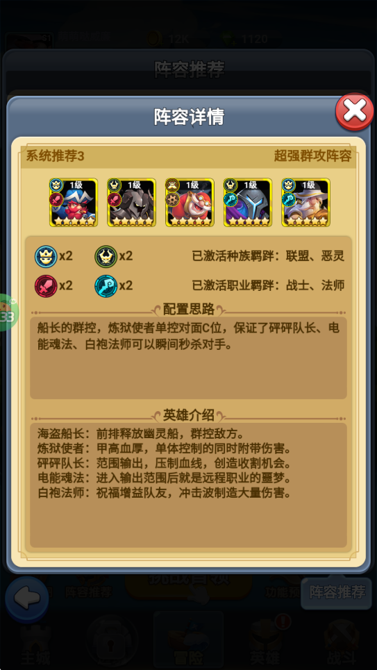 阵容组成:海盗船长+炼狱使者+砰砰队长+电能魂法+白袍法师