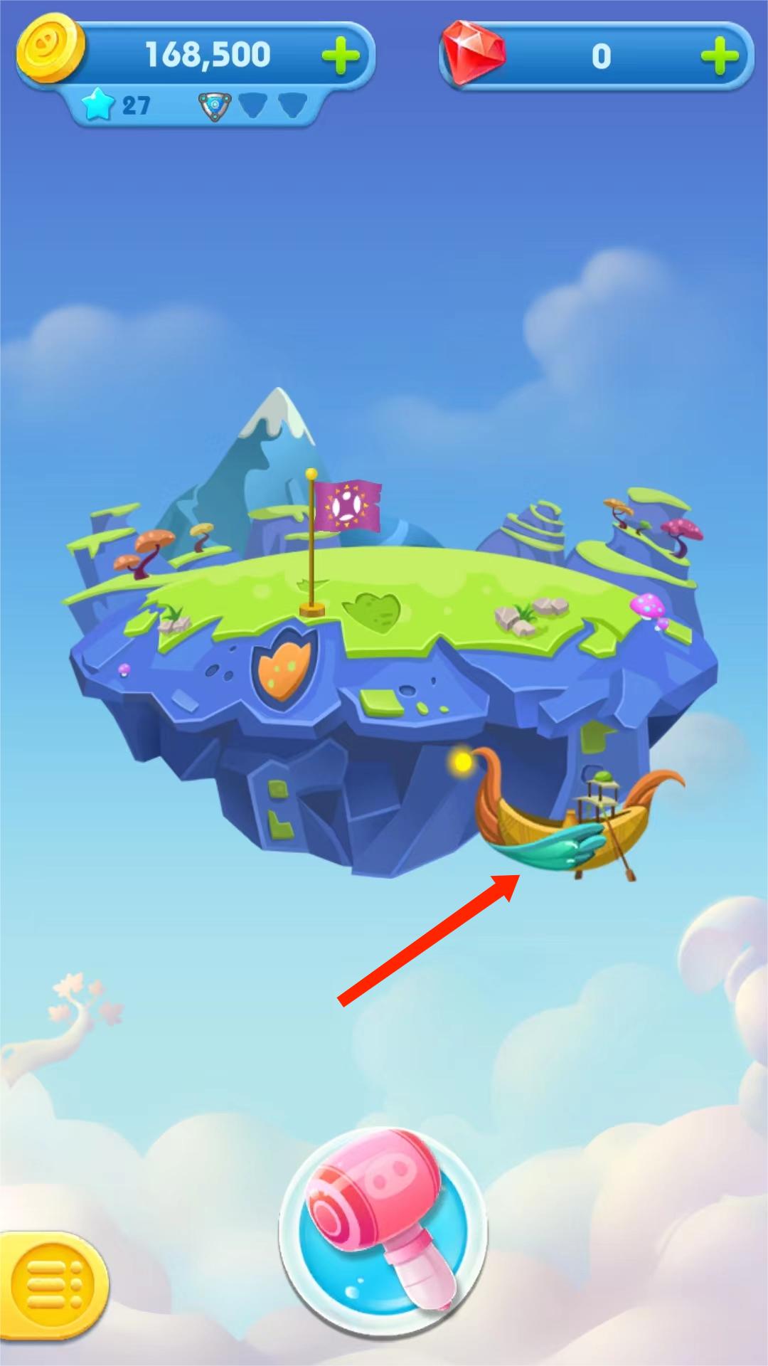 3、如图,这是其中的一个岛屿,选择下方【锤子】图标,