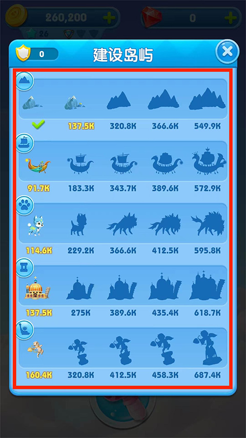 4、这里包括各种各样的建筑,点击需要解锁的建筑,