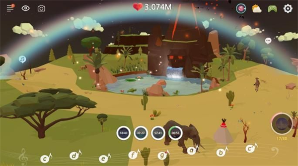 4、绿洲等级提升时地形会发生改变,还会出现树木和动物之类的新要素。通过音符演奏,能和游戏里的各种对象一起互动。
