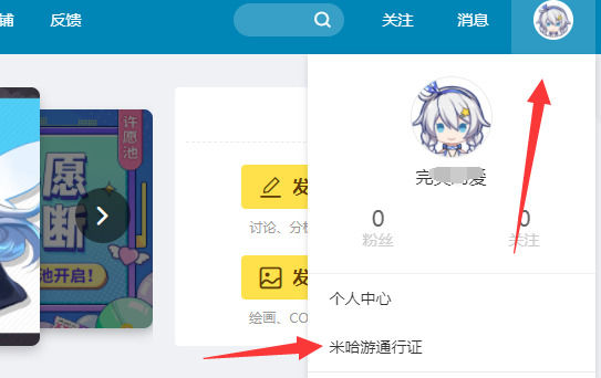1、进入官网之后点击上方的头像,选择 “米哈游通行证”