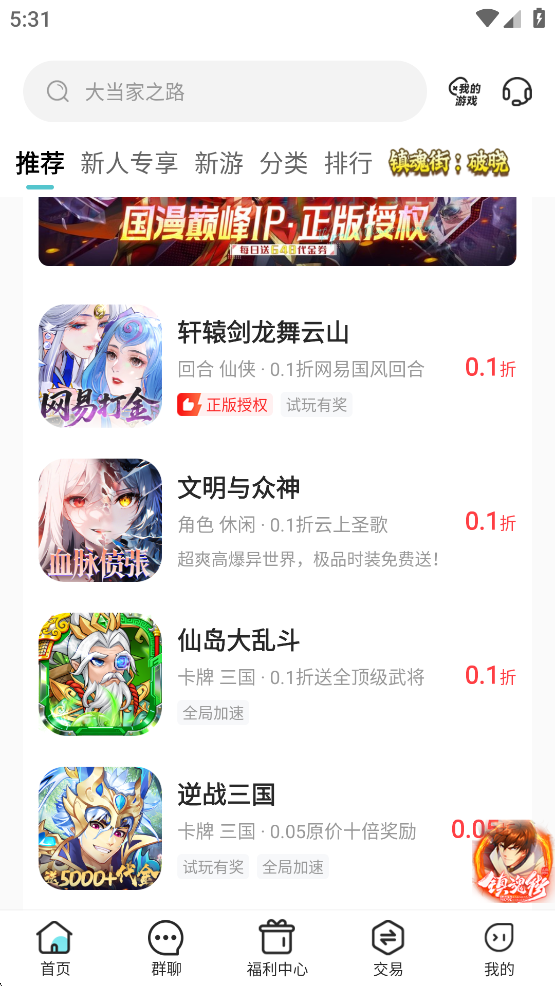 52玩手游盒子是一款拥有海量优质游戏资源的软件,这里包含了市面上几乎所有最新、最热的手机游戏,还支持游戏账号买卖交易服务。52手游盒子每天都会更新游戏版本以及增加新的游戏,玩家上线就送vip免费领首充,游戏内每天都有超多丰厚福利,玩家还可以参加活动赚取金币提现等,喜欢玩游戏的小伙伴快来本站下载体验吧。