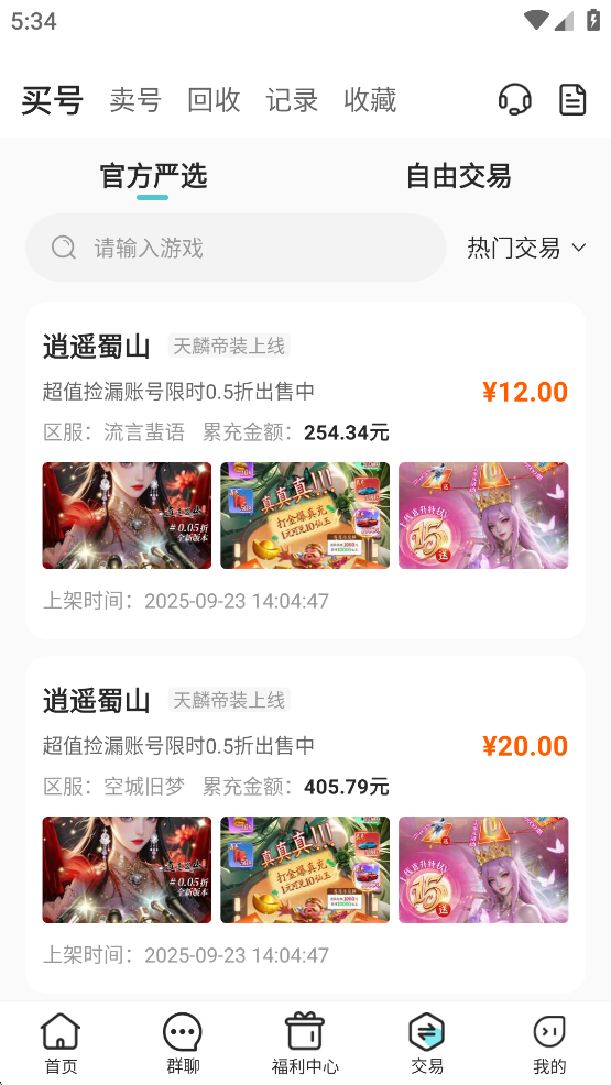 5、这里还有特设的交易系统,游戏账号不想玩就可以直接买,非常便捷