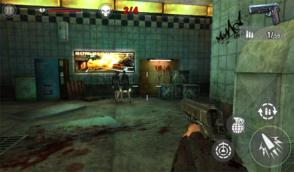 进入游戏可以看到操作界面很直观,可以玩的关卡都直接出现在了游戏主界面,玩家可以在主界面为自己下一次的战斗进行各种补给,也可以查看各个任务的过关条件和难度选择下一个攻关的关卡。购买装备和升级装备自不必说,游戏中也可以进行弹药补给哦。为了清掉城市里的丧尸保护幸存者,我们得一次又一次冲进各个街道进行近距离肉搏战,带上你最强大的武器战斗吧。
