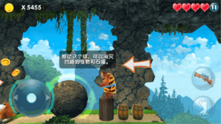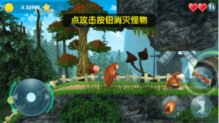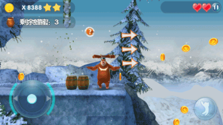 另外,熊出没大冒险采用了虚拟摇杆控制角色移动的玩法,只需方向键移动和跳跃就闯过危险重重的关卡,非常的简单易上手。