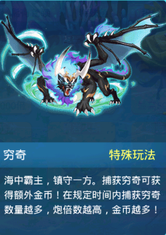 海中霸主,镇守一方。捕获穷奇可获得额外金币!在规定时间内捕获穷奇数量越多,炮倍数越高,金币越多!