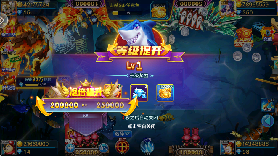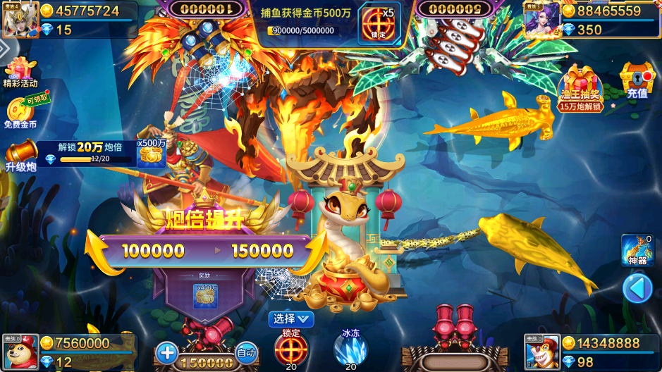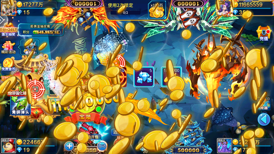 4、开放自由调整倍率与不同武器组合出多样捕鱼策略。