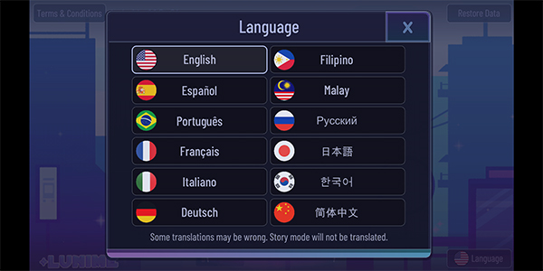 1、下载安装本站提供的游戏,打开游戏之后,点击language。
