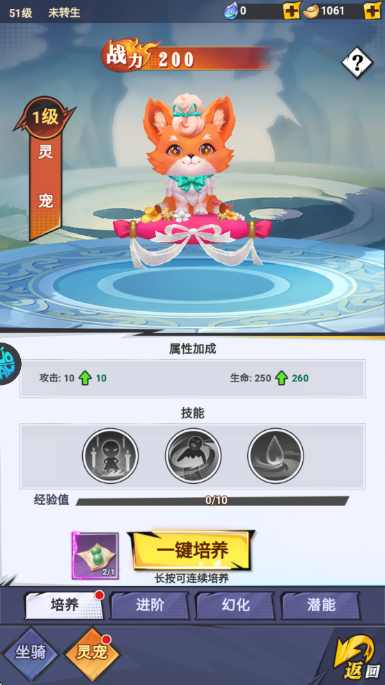 3、升级可为灵宠以及人物增加大量属性。