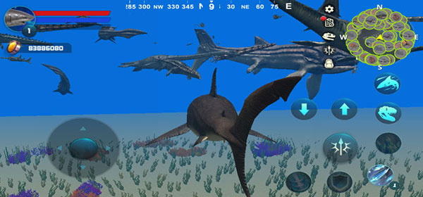 巨齿鲨模拟器是一款趣味休闲模拟类手机游戏,在游戏中玩家将控制巨齿鲨在一片未知的海洋里面进行探索,我们要做的就是在这个海底世界生存下去,这期间你可以选择在这里寻找其他的巨齿鲨来建立自己的家庭,也可以释放你的天性展开一场猎杀,不过前期我们并没有太多的技能,而技能都需要玩家自己来一一解锁,所以前期还是尽量猥琐发育才是上上之策。另外值得一提的是该游戏在细节处理上做的相当出色,比如巨齿鲨入水时溅起的水花、摆动的水草、击杀生物时产生的血雾,都将整个游戏画面表现的比较逼真。整体来说巨齿鲨模拟器这款游戏在玩法上拥有着高自由度,让人玩起来非常休闲放松,完全没有竞技类网游那种压力感。