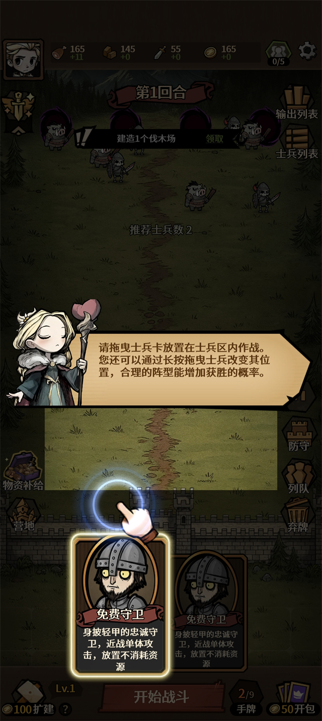 4、界面下方是手牌区,您可以通过拖曳卡牌进行建筑部署,使用卡牌会消耗相应的资源