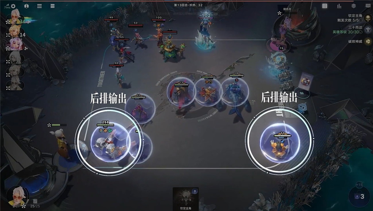 13、蒙犽与鲁班七号则放置在中后排安全区域持续输出。