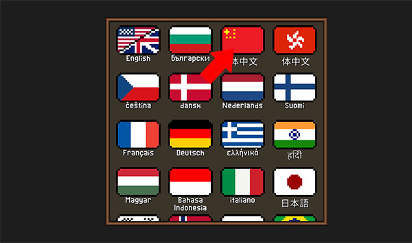 1、游戏首次进入时会要求玩家们选择语言,按照国旗选择简体中文即可